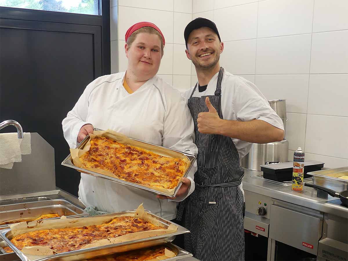 Unser Küchenteam bereitet noch alle Mahlzeiten in unserer Großküche selbst zu. Man kann zwischen 2 Menüs wählen und Sonderwünsche, wie Diät-, Schon- oder vegetarische Kost, werden entsprechend berücksichtigt.