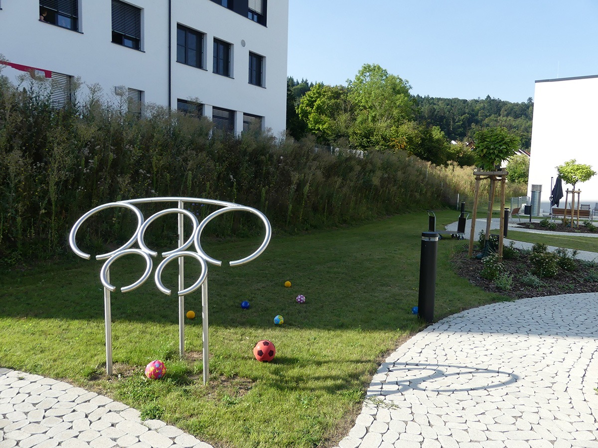Die neu angelegten und großzügigen Außenanlagen stehen Ihnen für einen Aufenthalt im Freien zur Verfügung. Im umzäunten Gartenbereich befinden sich auch verschiedene Fitnessgeräte. In der warmen Jahreszeit bieten sich zusätzlich unsere zwei Atrien zum Draußensitzen an.